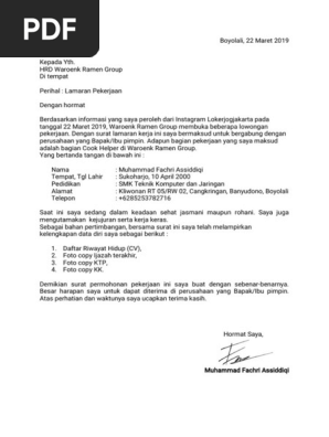 Maka dari itu agar tidak salah lagi untuk membuat surat lamaran pekerjaan berikut daftar kumpulan contoh surat lamaran pekerjaan.